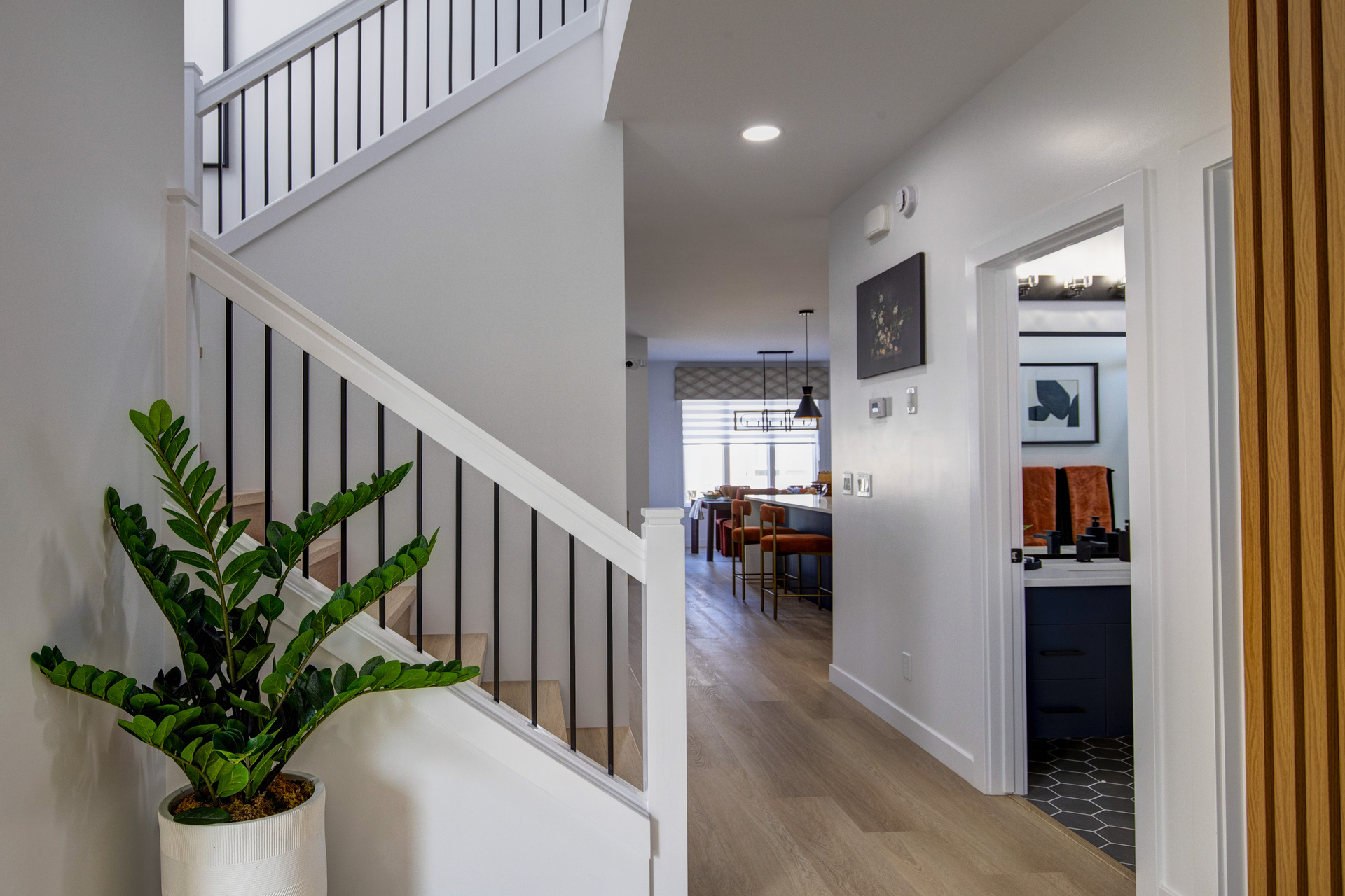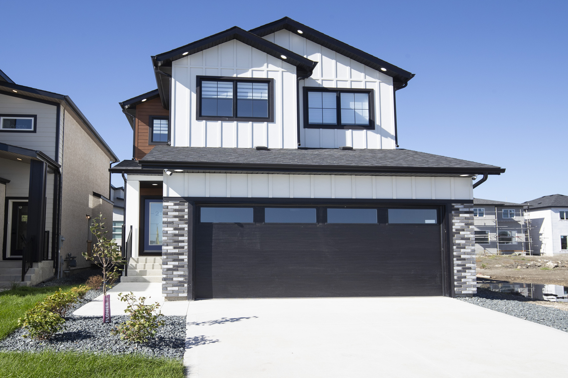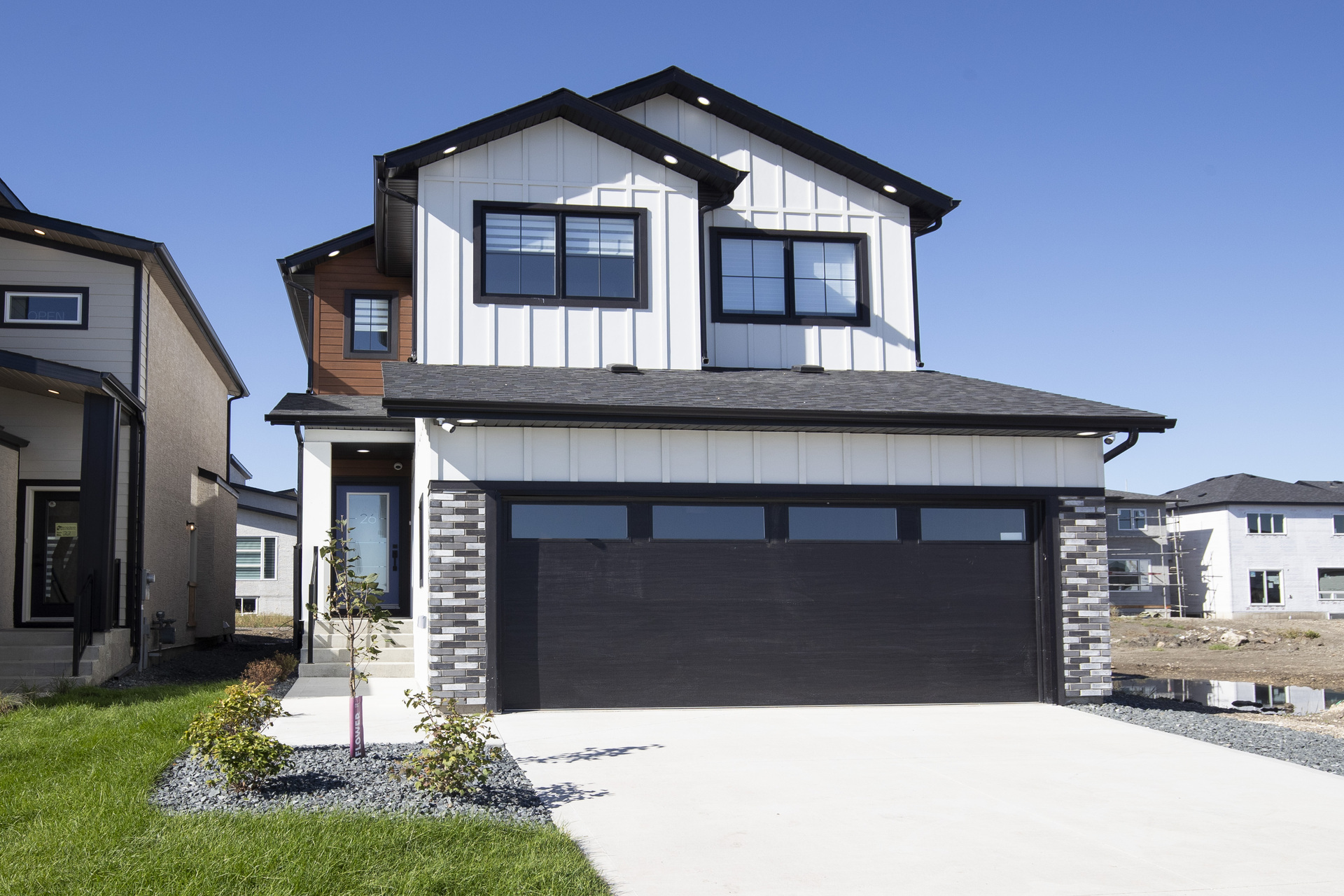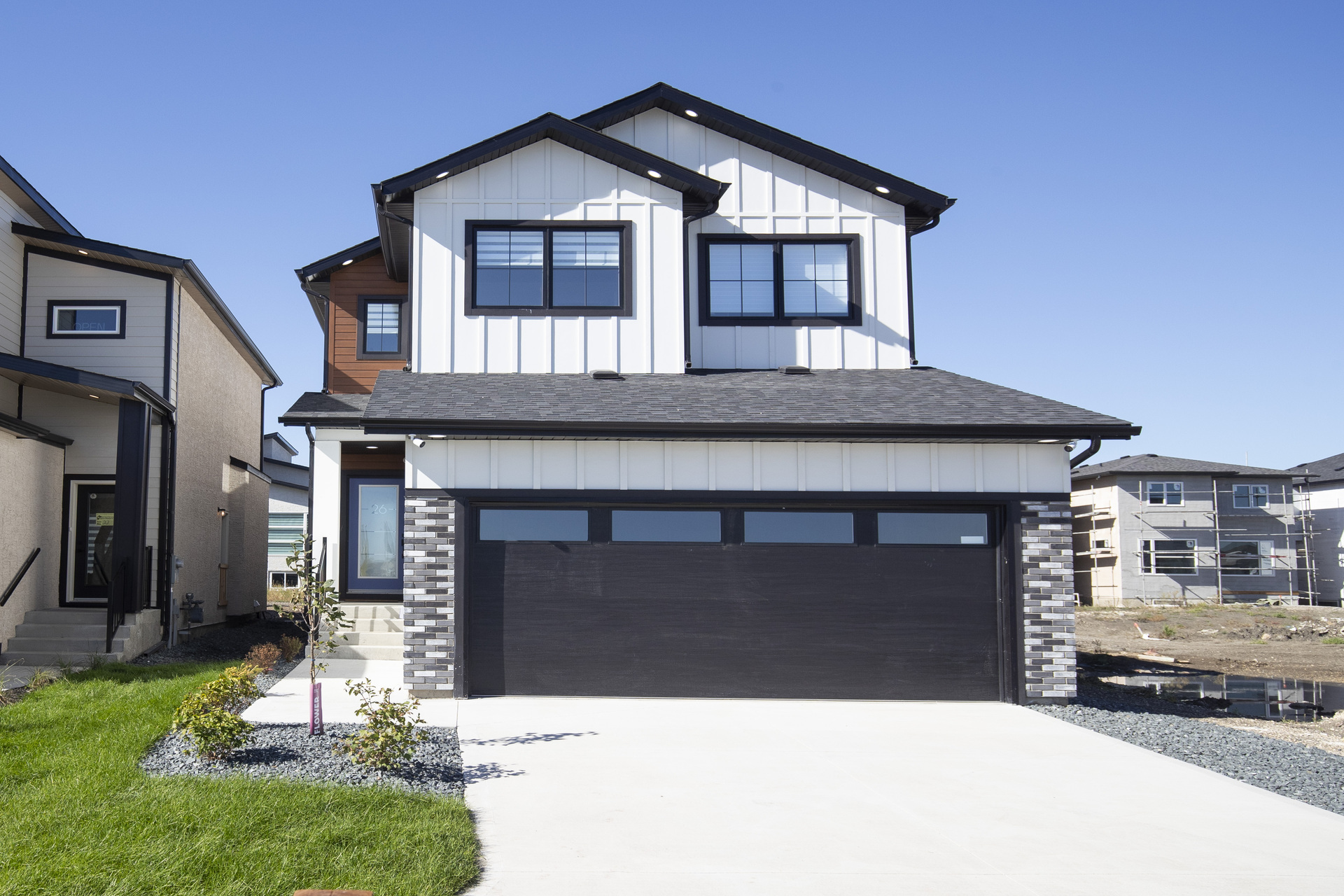 Welcome to 26 Ken Butchart, a stunning 4-bedroom, 3-bathroom residence. This family-friendly home features a spacious walk-in laundry with a sink, a steel beam, and a cantilever in the living room for architectural elegance. The kitchen boasts a 9 1/2-foot island and an upgraded acrylic two-color combination. The living area is enhanced by a tiled entertainment unit with a longer electric fireplace and shelving, ideal for gatherings. The second floor includes a loft for additional entertainment space, while the master bedroom features a tray ceiling and luxury tile in the ensuite. Finishes include vinyl tile in the main and common bathroom washrooms, with laminate flooring throughout the home. Triple-pane windows ensure superior energy efficiency. Exterior highlights include black front elevation windows, an upgraded black garage door with four horizontal glass inserts, and an aesthetically pleasing exterior second-floor pot. This spacious plan is perfect for creating lasting family memories.