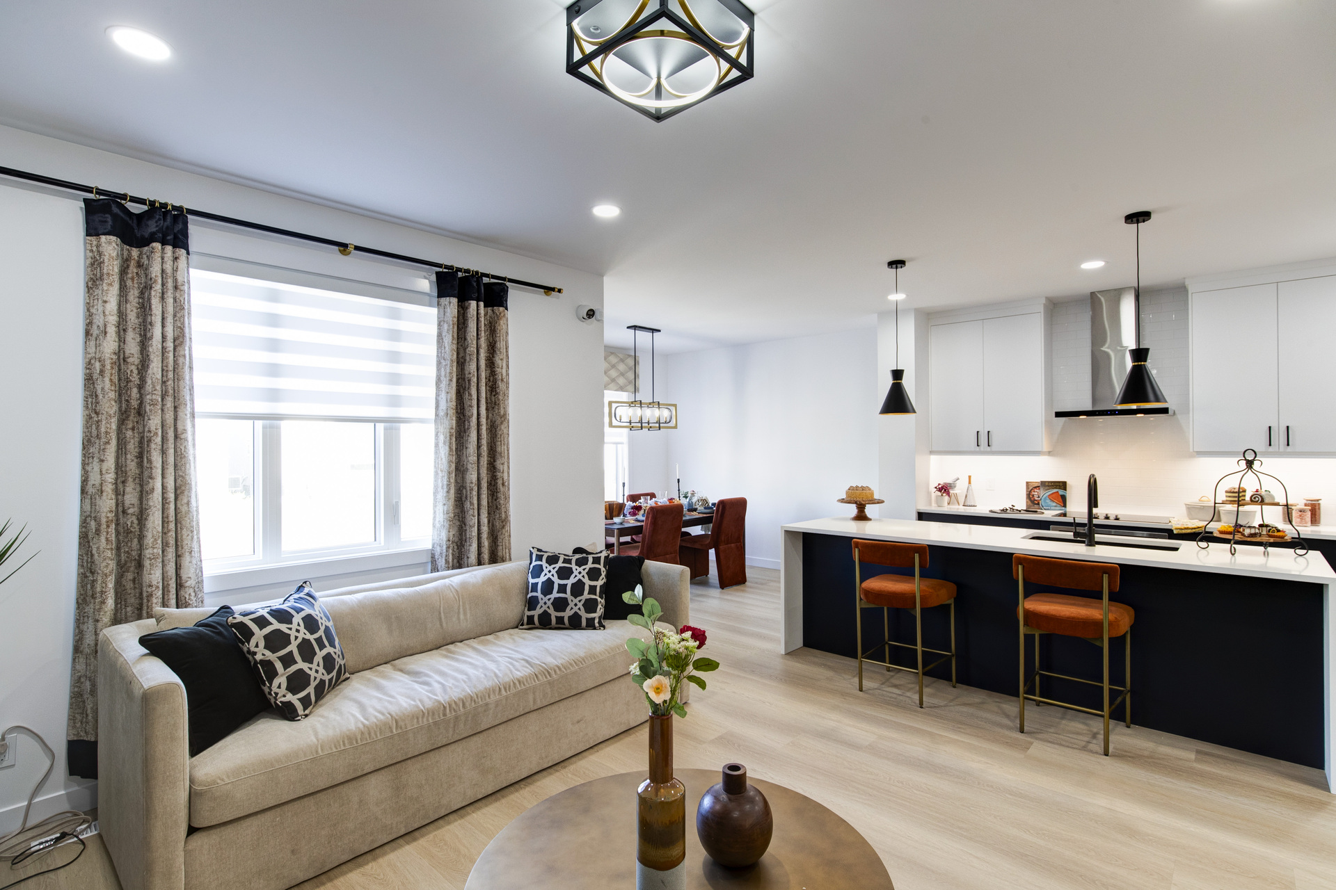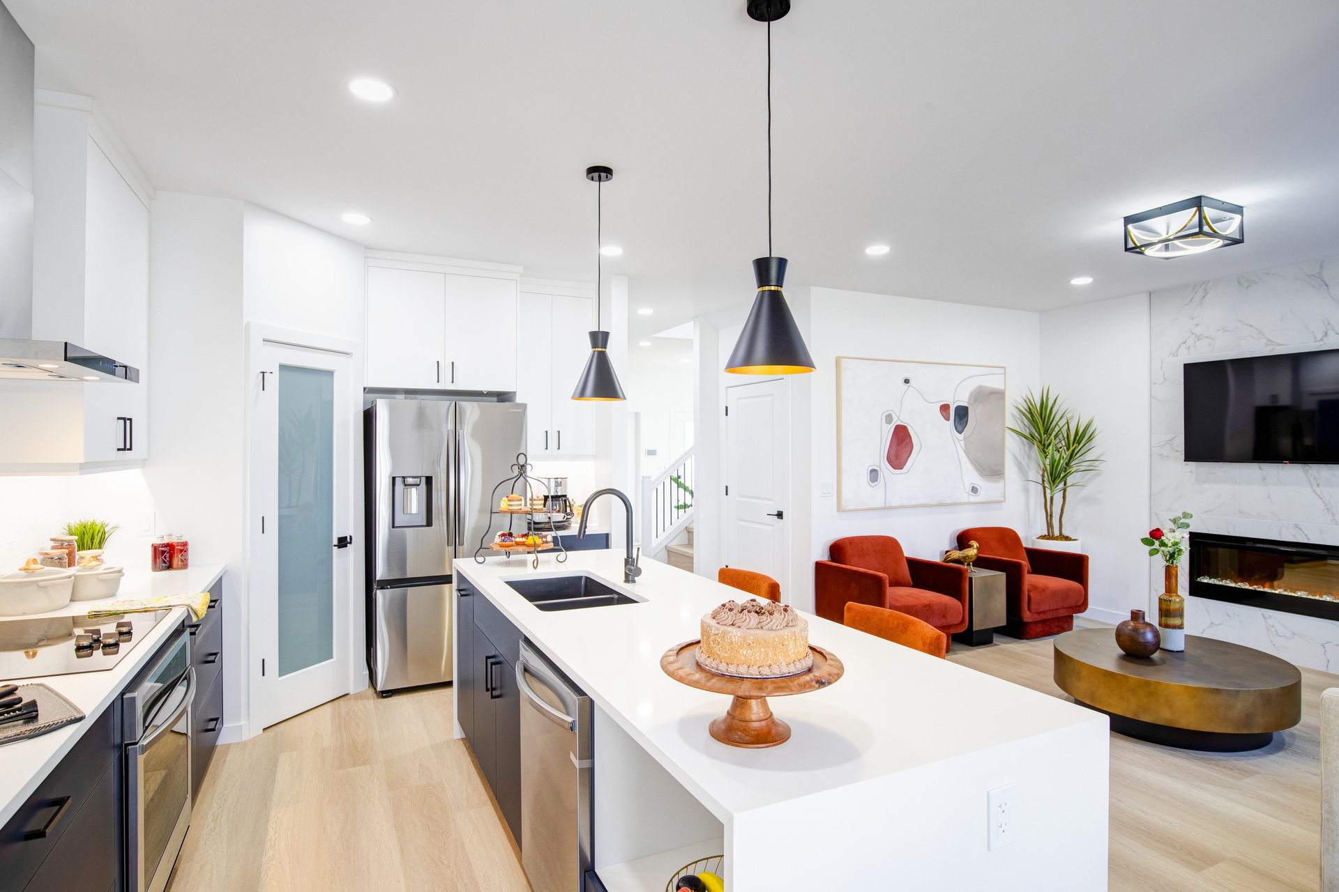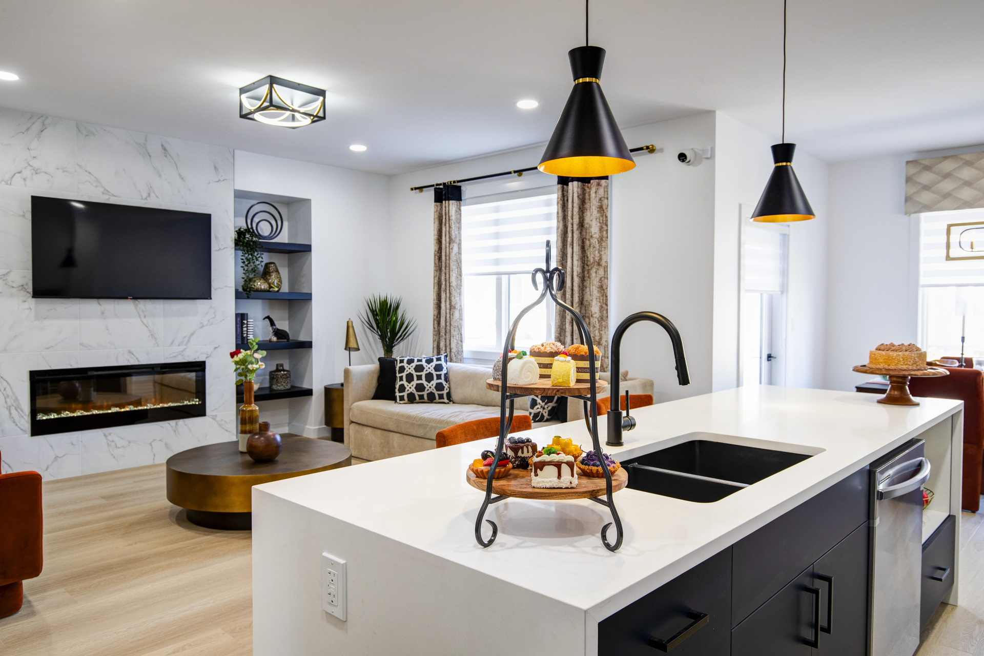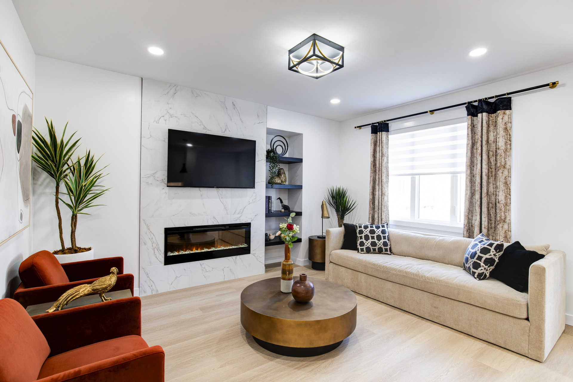 Welcome to 26 Ken Butchart, a stunning 4-bedroom, 3-bathroom residence. This family-friendly home features a spacious walk-in laundry with a sink, a steel beam, and a cantilever in the living room for architectural elegance. The kitchen boasts a 9 1/2-foot island and an upgraded acrylic two-color combination. The living area is enhanced by a tiled entertainment unit with a longer electric fireplace and shelving, ideal for gatherings. The second floor includes a loft for additional entertainment space, while the master bedroom features a tray ceiling and luxury tile in the ensuite. Finishes include vinyl tile in the main and common bathroom washrooms, with laminate flooring throughout the home. Triple-pane windows ensure superior energy efficiency. Exterior highlights include black front elevation windows, an upgraded black garage door with four horizontal glass inserts, and an aesthetically pleasing exterior second-floor pot. This spacious plan is perfect for creating lasting family memories.