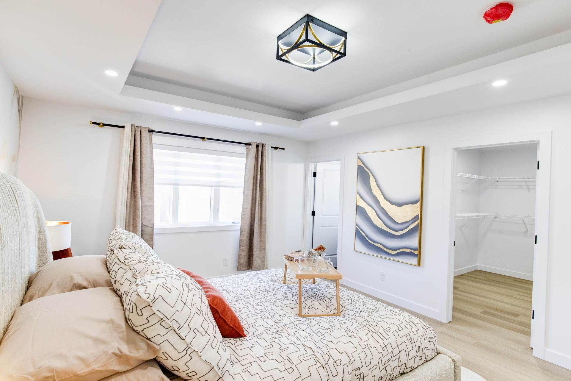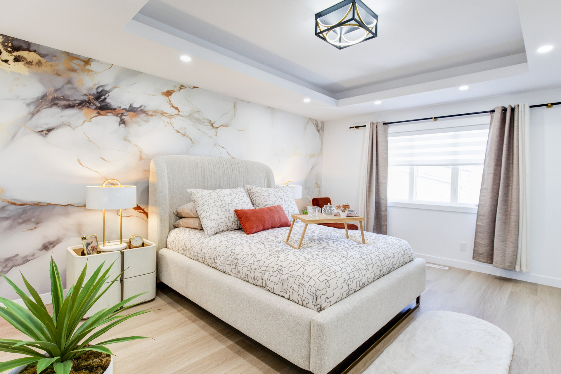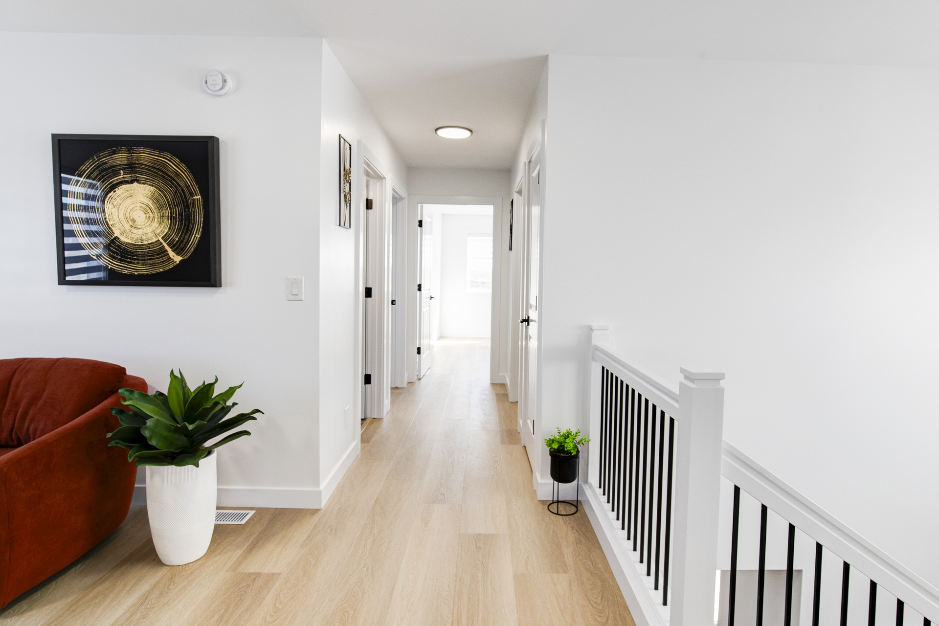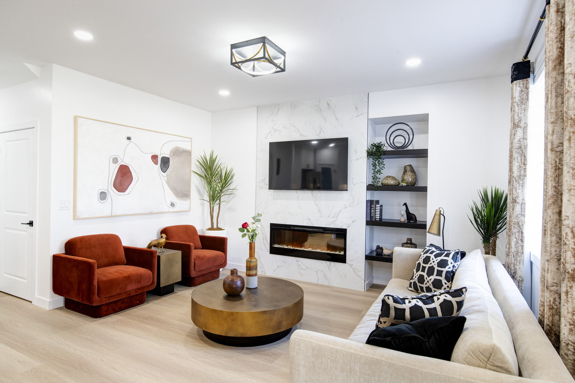 Welcome to 26 Ken Butchart, a stunning 4-bedroom, 3-bathroom residence. This family-friendly home features a spacious walk-in laundry with a sink, a steel beam, and a cantilever in the living room for architectural elegance. The kitchen boasts a 9 1/2-foot island and an upgraded acrylic two-color combination. The living area is enhanced by a tiled entertainment unit with a longer electric fireplace and shelving, ideal for gatherings. The second floor includes a loft for additional entertainment space, while the master bedroom features a tray ceiling and luxury tile in the ensuite. Finishes include vinyl tile in the main and common bathroom washrooms, with laminate flooring throughout the home. Triple-pane windows ensure superior energy efficiency. Exterior highlights include black front elevation windows, an upgraded black garage door with four horizontal glass inserts, and an aesthetically pleasing exterior second-floor pot. This spacious plan is perfect for creating lasting family memories.