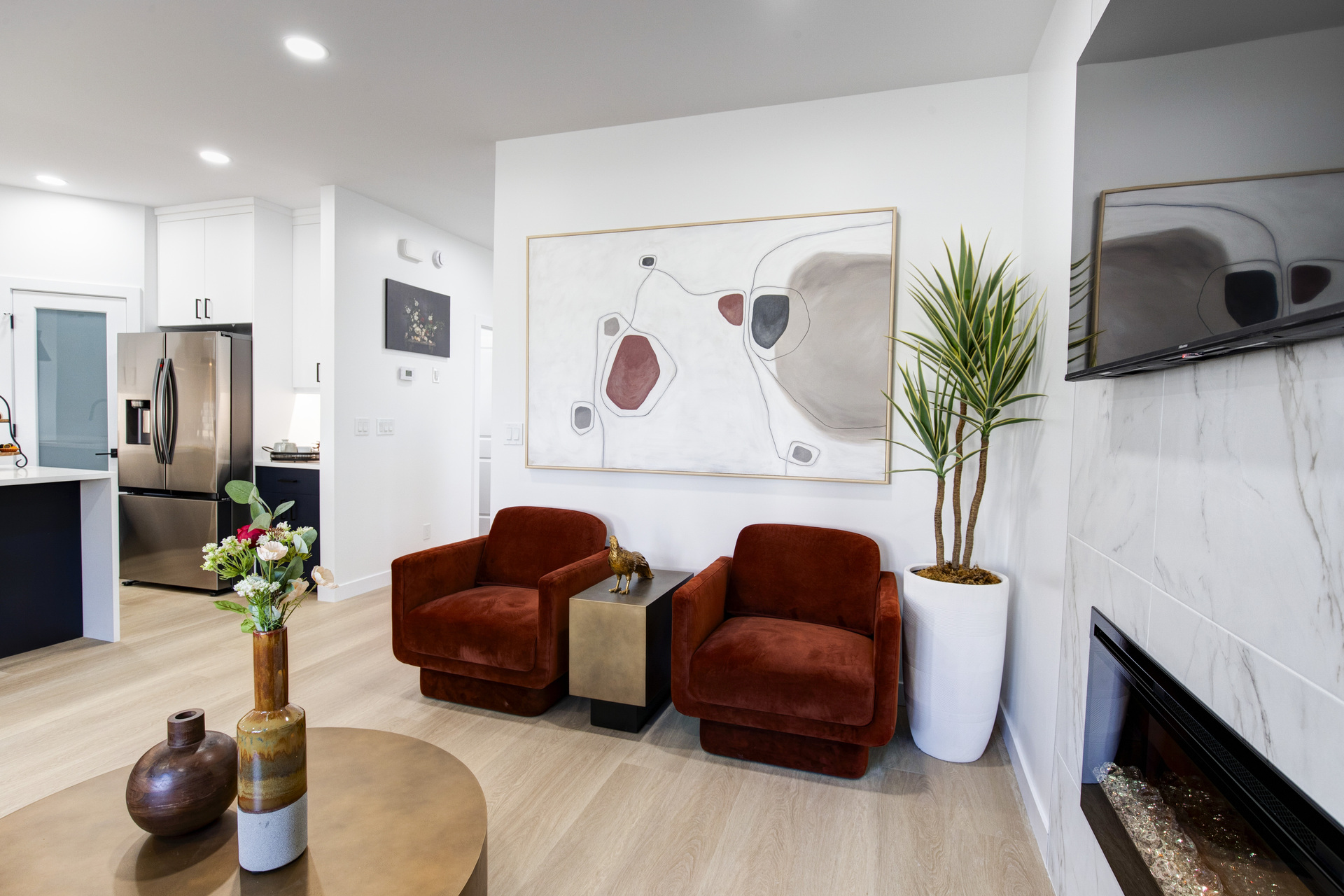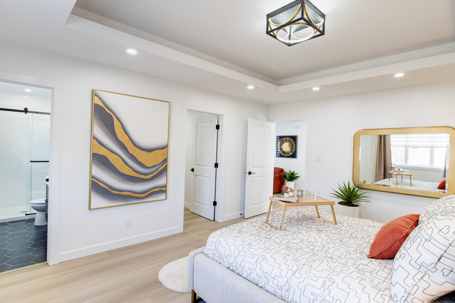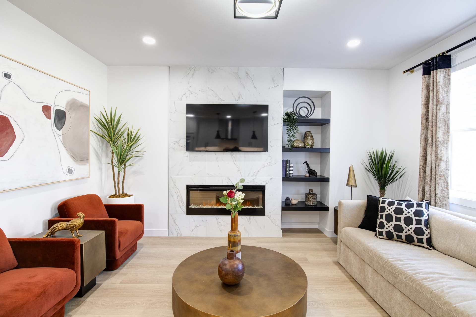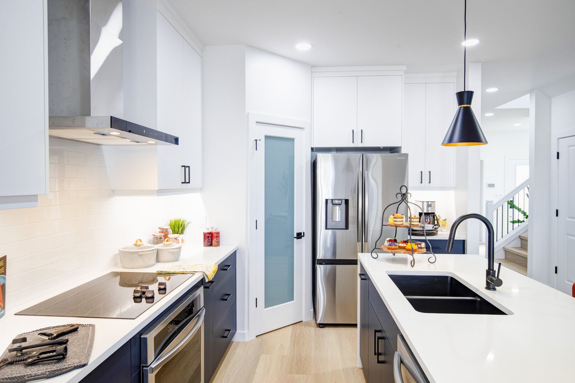 Welcome to 26 Ken Butchart, a stunning 4-bedroom, 3-bathroom residence. This family-friendly home features a spacious walk-in laundry with a sink, a steel beam, and a cantilever in the living room for architectural elegance. The kitchen boasts a 9 1/2-foot island and an upgraded acrylic two-color combination. The living area is enhanced by a tiled entertainment unit with a longer electric fireplace and shelving, ideal for gatherings. The second floor includes a loft for additional entertainment space, while the master bedroom features a tray ceiling and luxury tile in the ensuite. Finishes include vinyl tile in the main and common bathroom washrooms, with laminate flooring throughout the home. Triple-pane windows ensure superior energy efficiency. Exterior highlights include black front elevation windows, an upgraded black garage door with four horizontal glass inserts, and an aesthetically pleasing exterior second-floor pot. This spacious plan is perfect for creating lasting family memories.